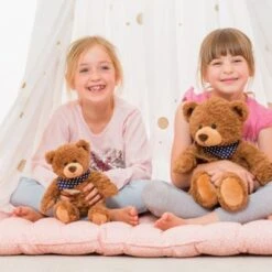 Als Einschlafhilfe, zum Schmusen und Spielen: Das 30 Zentimeter große Kuscheltier von Hermann Teddy Collection punktet im Bären-Design mit an- und ausziehbarem Schlafanzug. Kuscheltier Schlafanzugbär von Hermann Teddy Collection Schlafanzug an- und ausziehbar Größe: ca. 30 cm aus hochwertigem Soft Touch-Plüsch mit Füllung aus Polyesterwatte waschbar bei 30 °C ab Geburt geeignet Das Kuscheltier von Hermann Teddy Collection bietet Kindern ab der Geburt fantasievolle Spielmomente und kuschelige Stunden. Der Plüschbär trägt einen Schlafanzug und ist kindgerecht gestaltet. Mit 30 Zentimetern Größe passt er auch als Einschlafhilfe bequem ins Kinderbett. Seine hochwertige Soft Touch-Qualität mit Polyesterwatte-Füllung regt zum Greifen und Tasten an. Motorische Fähigkeiten können beim An- und Ausziehen des Schlafanzugs trainiert werden. Ist das Kuscheltier verschmutzt, kann es bei niedrigen Temperaturen in der Waschmaschine gereinigt werden.