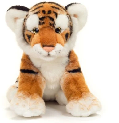 Dieser kleine süße Tiger in sitzender Position, sieht mit seinem niedlichen Blick und seinem samtig gestreiften Fell einfach zum Verlieben aus. Dank des realistischen Aussehens und der hochwertigen Verarbeitung mit einer Füllung aus 100% recyceltem Kunststoff wird er zu einem echten Hingucker in jedem Kinderzimmer. Der kleine Plüschgefährte eignet sich hervorragend zum Spielen, Kuscheln und Schmusen oder einfach nur als Eye-Catcher fürs Wohlfühl-Ambiente.